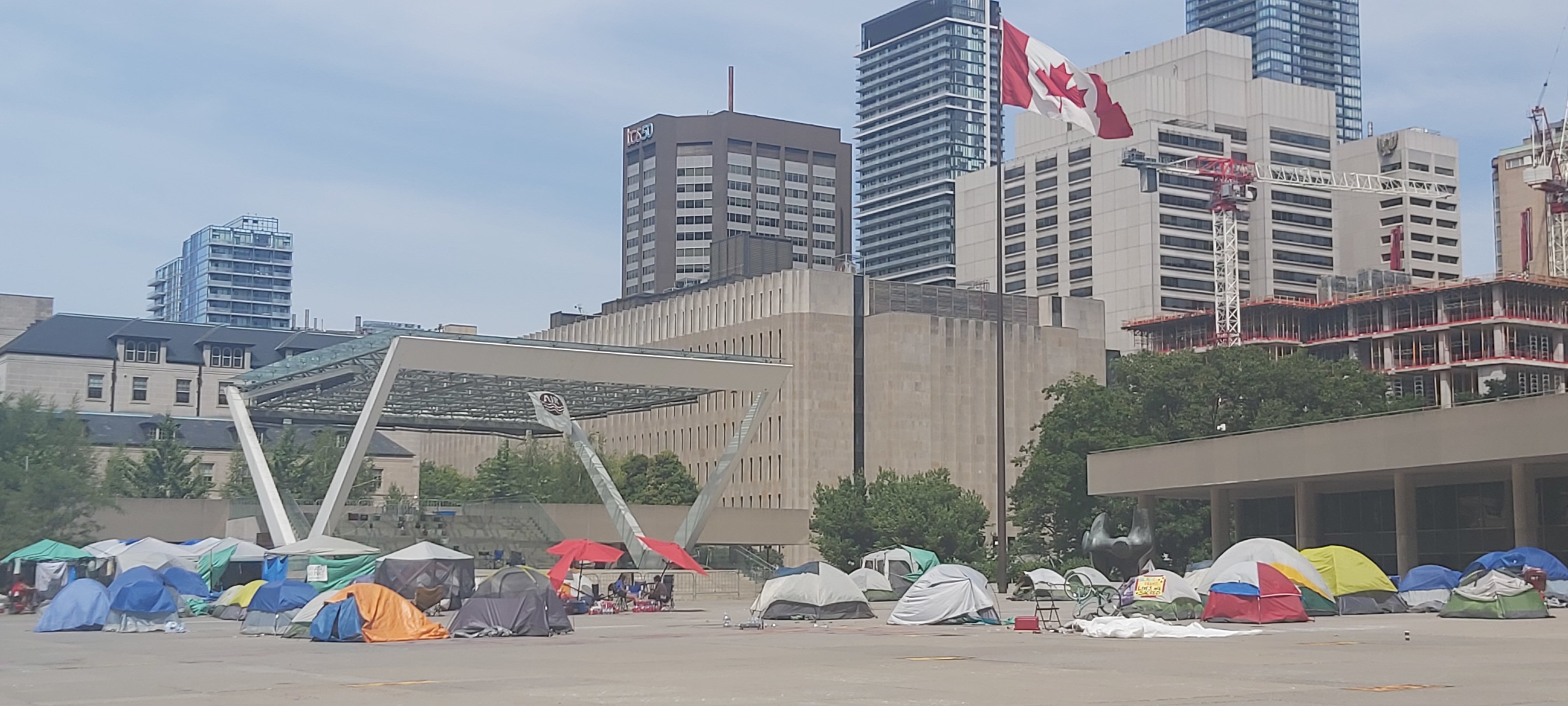 A group of about 20 to 30 anti-racism protesters, who had been camped out at Nathan Phillips Square since June 19th, have moved their tents off to the side of the square, for now.