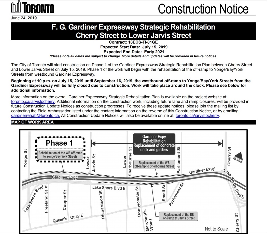 Also keep in mind that in order to safely compete the construction, the westbound on-ramp at Jarvis, which runs underneath the westbound York-Bay-Yonge ramp will be closed overnight for 12 nights - from 10 p.m. until 5 a.m. from July 16th until July 31st.