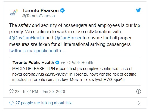 For more information on the new coronavirus, the province of Ontario has set up a dedicated website: https://www.ontario.ca/page/wuhan-novel-coronavirus-2019-ncov