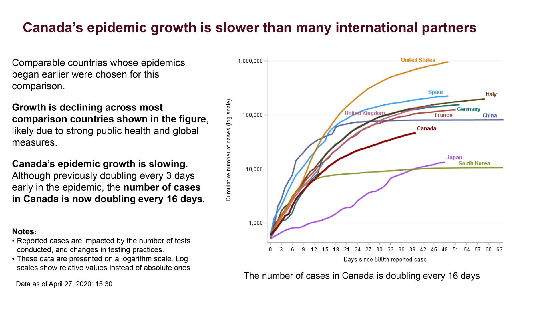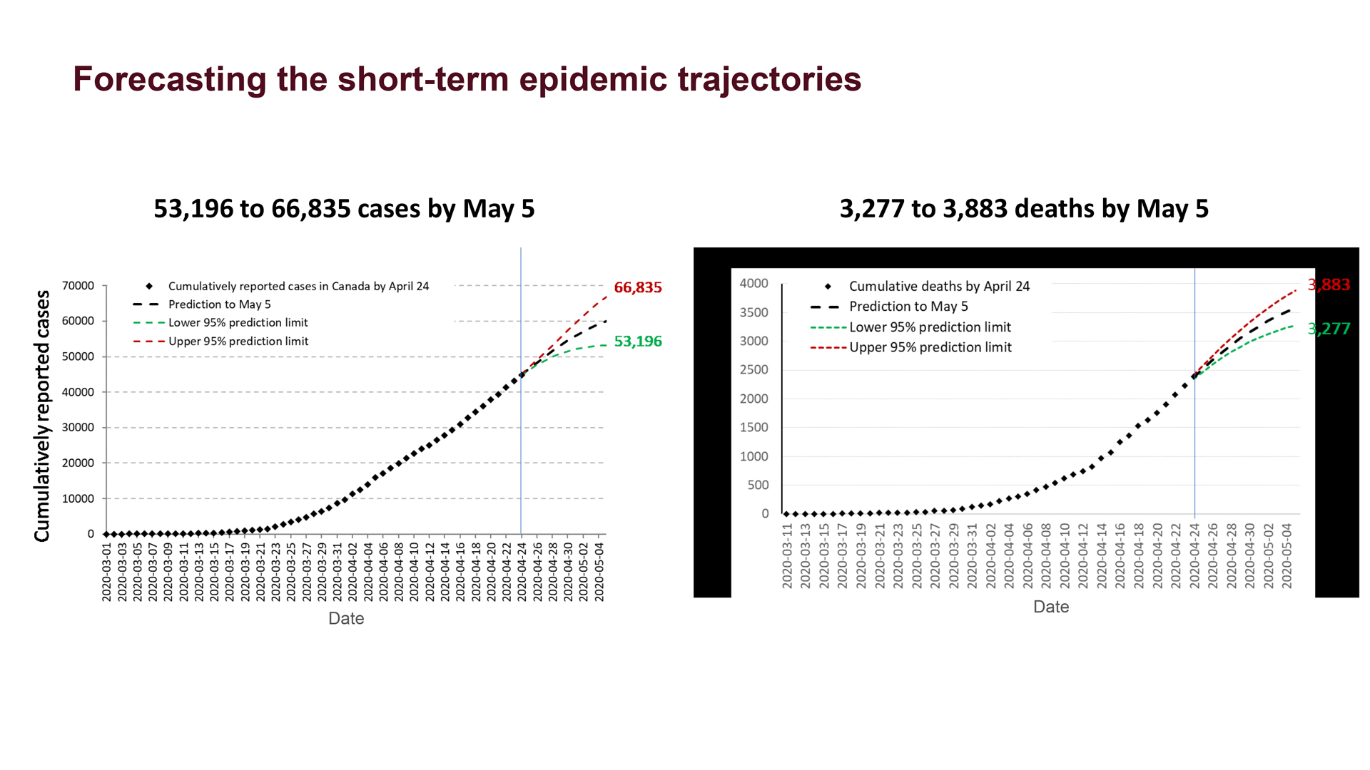 Projections by the Public Health Agency of Canada have been off before, for example, a presentation April 9th suggested there would be 500-700 deaths by April 16th.