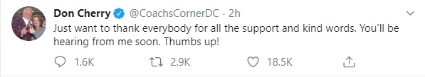 But, many seem to be in Cherry's corner, including hockey legend, Bobby Orr, who according to CBC Sports, said during a Boston radio show tonight - about Cherry's firing, "What they've done to him up there is disgraceful. It really is."