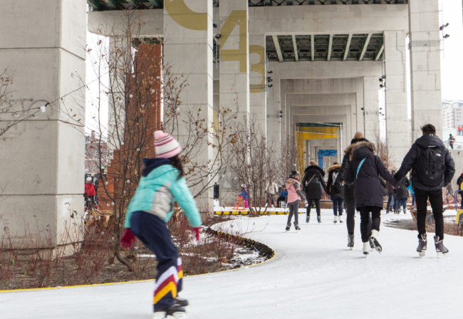 Open from 12 to 9pm, special family-friendly programming includes skate rentals all day, Pyjama-Rama party, Fay & Fluffy's storytime and an interactive blanket fort installation (more)
