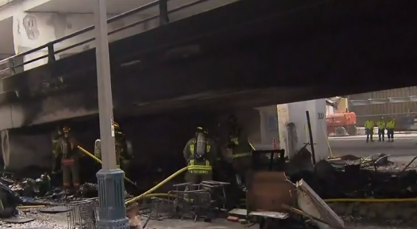 Apparently there were tents underneath the ramp, that fire crews had to remove, along with other items, in order to battle the flames.