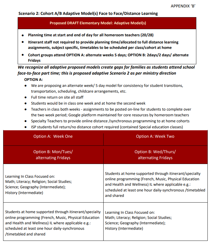 NEWSTALK1010 has received a document that will go before the Toronto Catholic District School Board, which outlines potential schedules, options and learning environments for the fall.