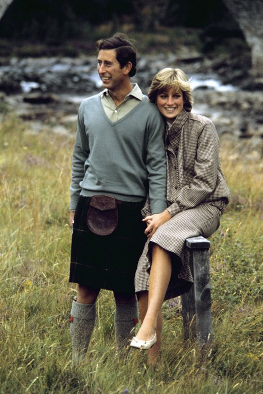 For her honeymoon photos with Charles taken in the lovely Scottish countryside, Diana turned to designer Bill Pashley for a casual, comfortable brown tweed woolen day-suit.
