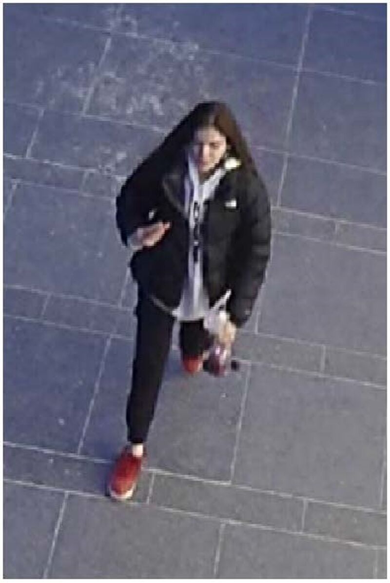 The woman was described as 18-20 years old, long brown or black hair mid-back length, wearing a black jacket, red running shoes, black backpack possibly 'Jansen' brand.