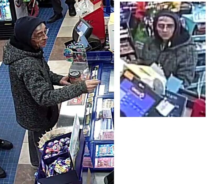 He also had some help from an older man,described as 50-60 years old, white or grey hair, rectangular rim glasses, wearing a dark hoodie, grey and black patterned jacket.