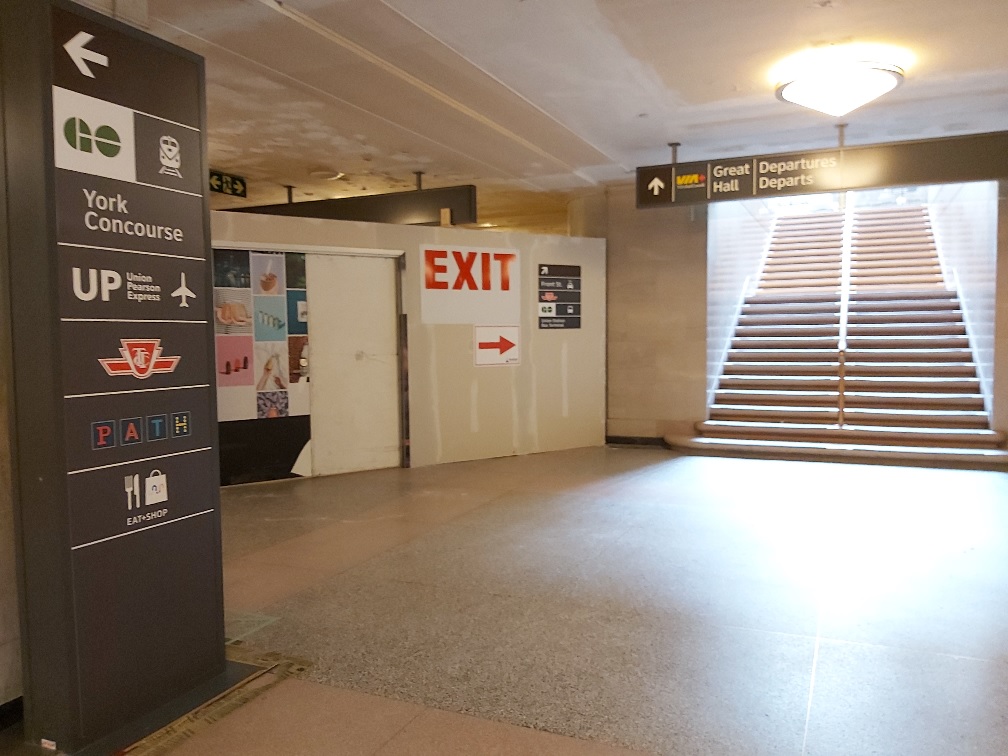 Several entrances/exits to old pathways have been sealed off for now, so that people can still access Union Station while the long-delayed revitalization project can continue.
