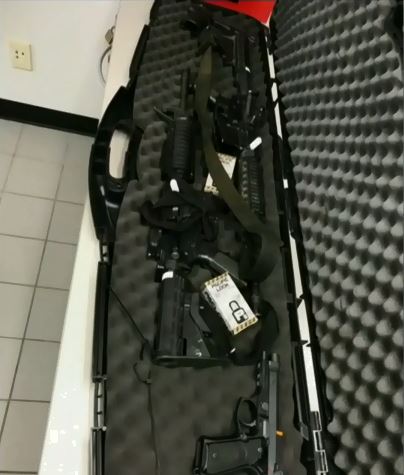 CTV News reports that a case was delivered on August 30th by FedEx, containing two military-grade M4 assault rifles and two handguns.