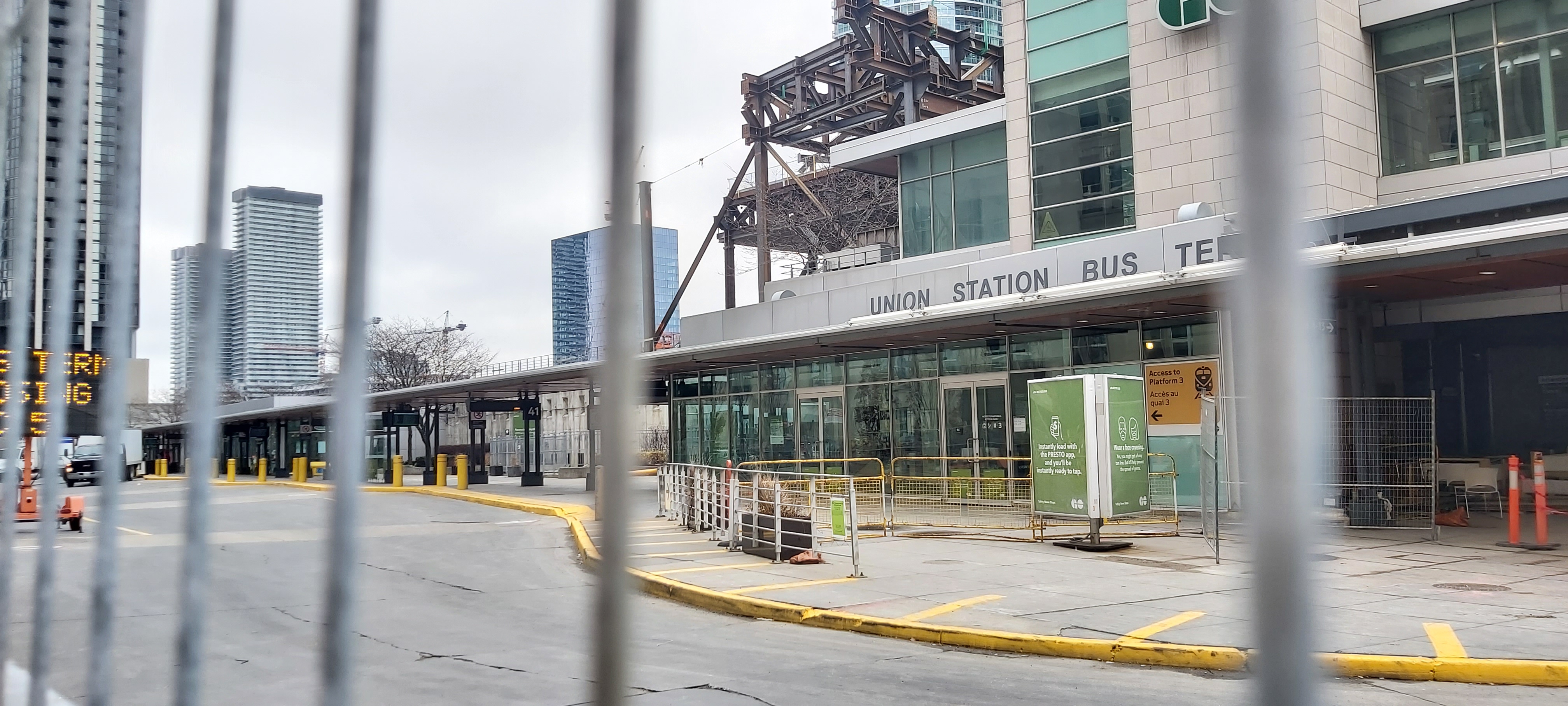 The old bus terminal, located near the southeast corner of Bay and Front is blocked off and will be demolished.