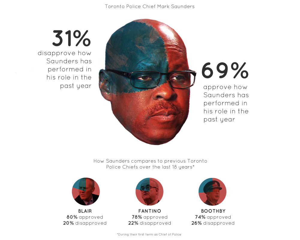 69% of Torontonians approve of the job Mark Saunders has done as Chief of Police over the last year.