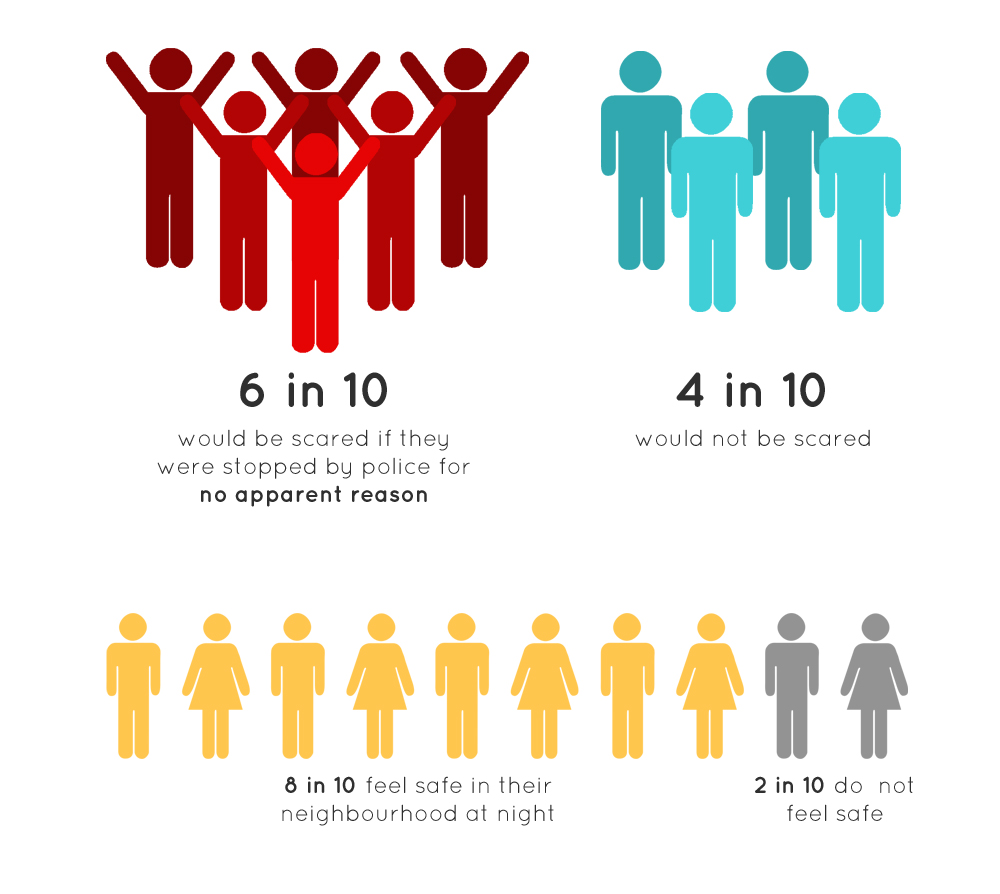 In 2003, a NEWSTALK 1010 poll found that just 34% of Torontonians indicated that if they were pulled over by the police and suspected of something they'd be "frightened by how they might treat me."