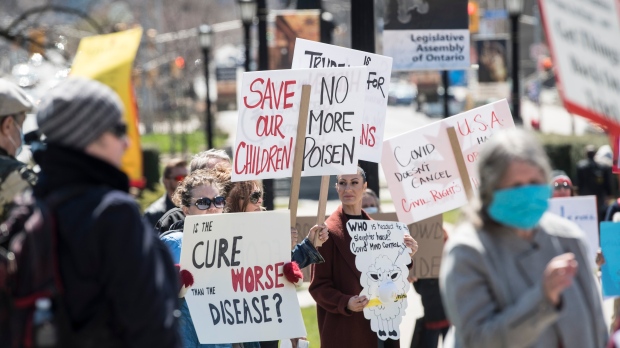 Meantime, during his daily briefing this afternoon, the premier expressed his frustration with a group of about 100 protestors on the grounds of Queens Park, who were calling for an end to the provincial shutdown.