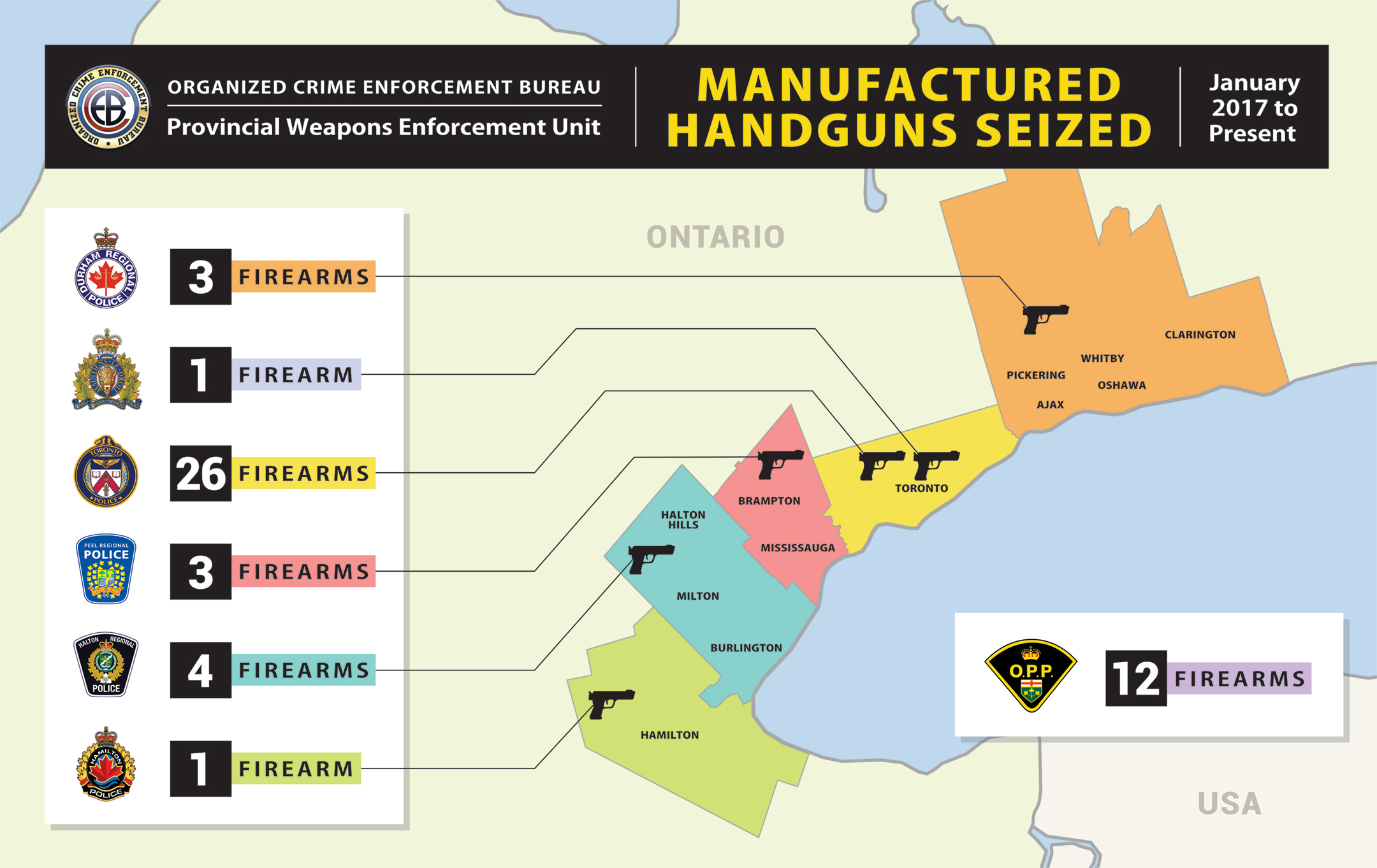 Ontario Provincial Police say they have busted an organized crime group that was manufacturing illegal handguns in the province.
