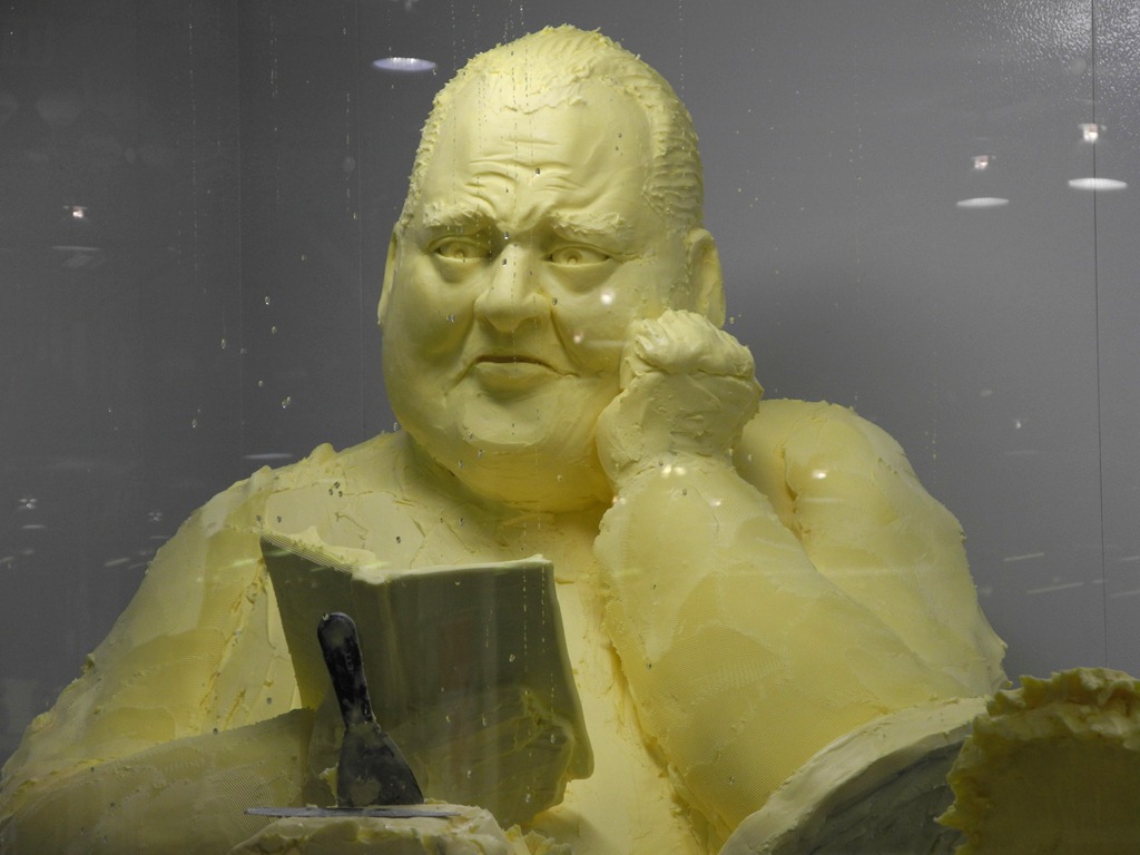 The butter sculptures are a collaborative work-in-progress by artists David Salazar, Olenka Kleban, Laird Henderson and Bailey Henderson.