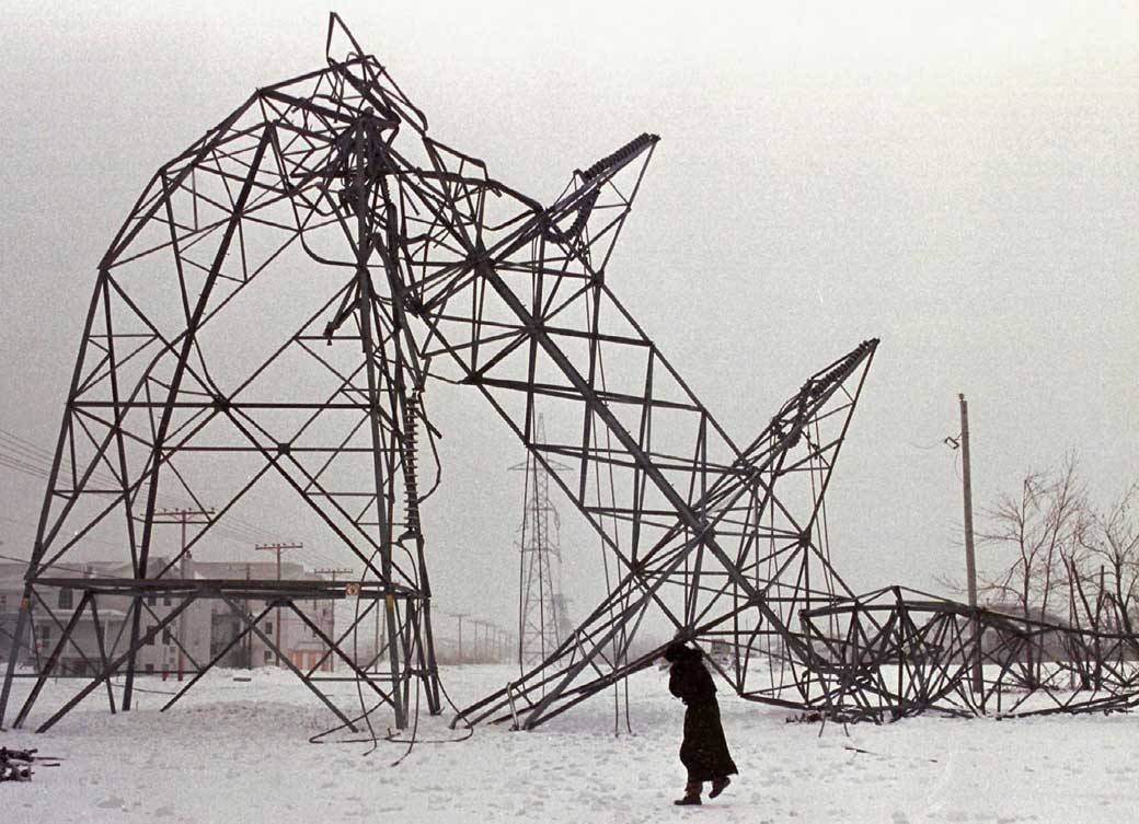 Even the metal towers that held up the grid had collapsed under the weight of 100 millimetres or so of freezing rain that left everything coated in ice.