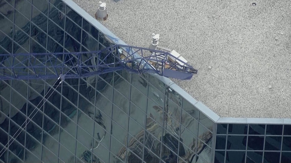 Fortunately, no one inside the office tower, struck by the crane, was injured.