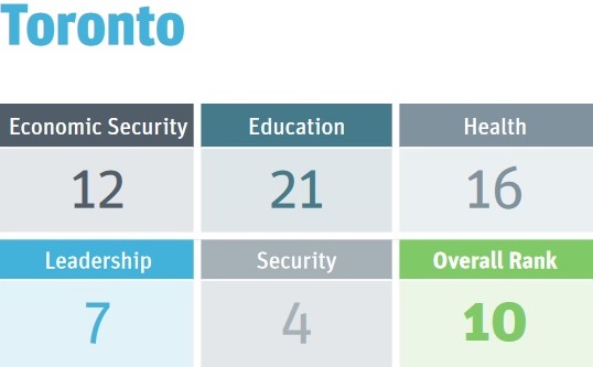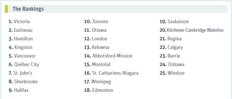 Toronto comes in tenth on the list with Hamilton in third spot.
