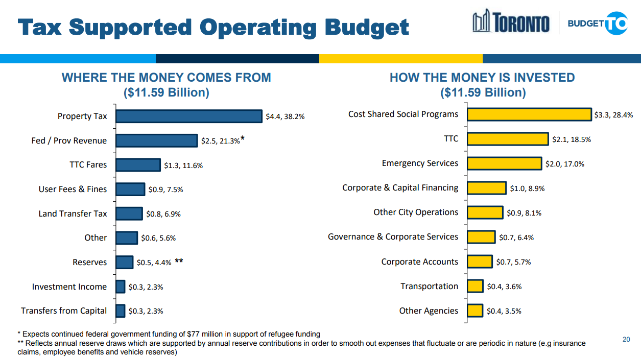 The biggest addition to the budget this year is Mayor John Tory's building fund, which is estimated to provide $6.6 billion for transit and affordable housing over the next six years.