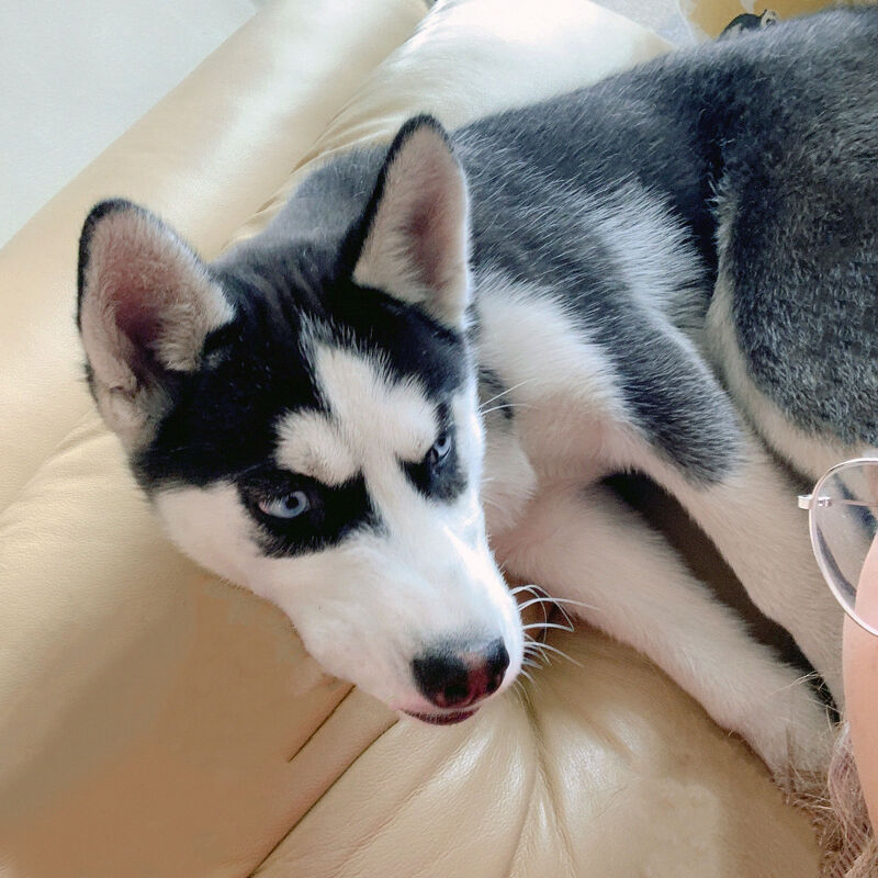 A 4-month-old, white and black husky was tied to a post while the owner was inside a store shopping.