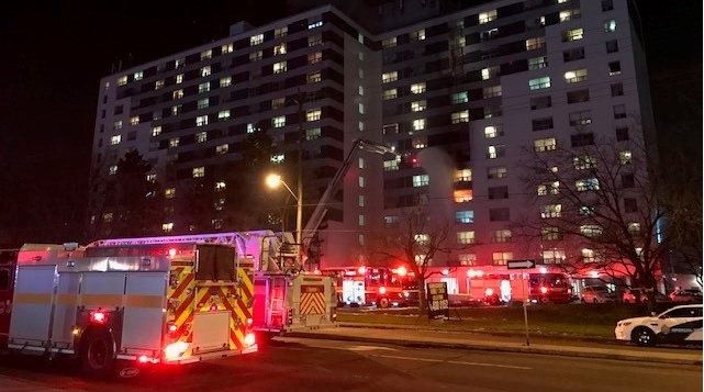 Acting Fire Chief Jim Jessop says the fire broke out in a 5th-floor unit of the 14-floor building. It is a Toronto Community Housing building, which reportedly houses many seniors.
