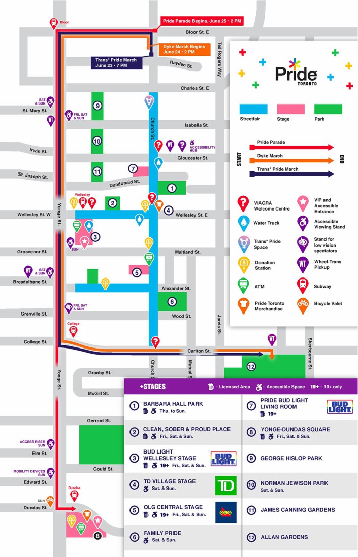 It starts at Church and Bloor streets, will head west on Bloor, south on Yonge Street and east on Dundas Street toward Victoria Street and ends at Yonge-Dundas square.