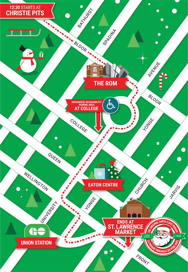 The 114th edition of the original Santa Claus Parade will close major streets throughout the downtown on Sunday. The parade will begin at 12:30 pm at Bloor Street West and Christie, making its way east along Bloor to Avenue Road, then south on Queen's Park, south on Univerisity, past Queen Street and east along Wellington to St. Lawrence Market. The parade should conclude between 3 and 4 pm.