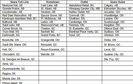 The company plans to close of 20 full-line locations, 15 "Sears Home" stores, 10 "Sears Outlets" and 14 "Sears Hometown" locations. In Ontario, stores in Scarborough, Woodbridge, Orangeville, Cornwall and Chatham will be closing their doors.