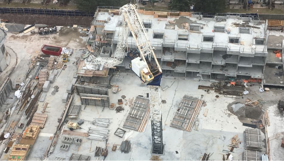 In Mississauga, a construction crane partially collapsed at a condo building under construction near Erin Mills and Eglinton.