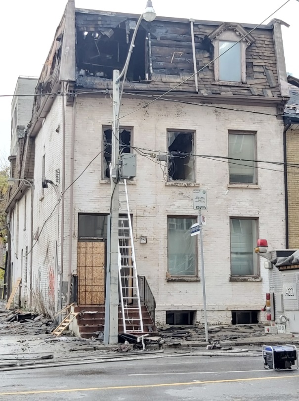 An abandoned multi-story heritage building at 85 Shuter Street was ablaze.