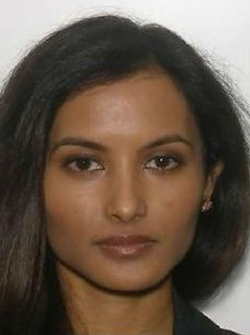 Bisesar looked markedly different than the glamorous, polished woman in photos circulated after Junor's death. In the prisoner's box she wore no makeup, her wavy dark hair un-styled. Bisesar wore glasses and a dark-coloured oversized workshirt over a beige turtleneck.