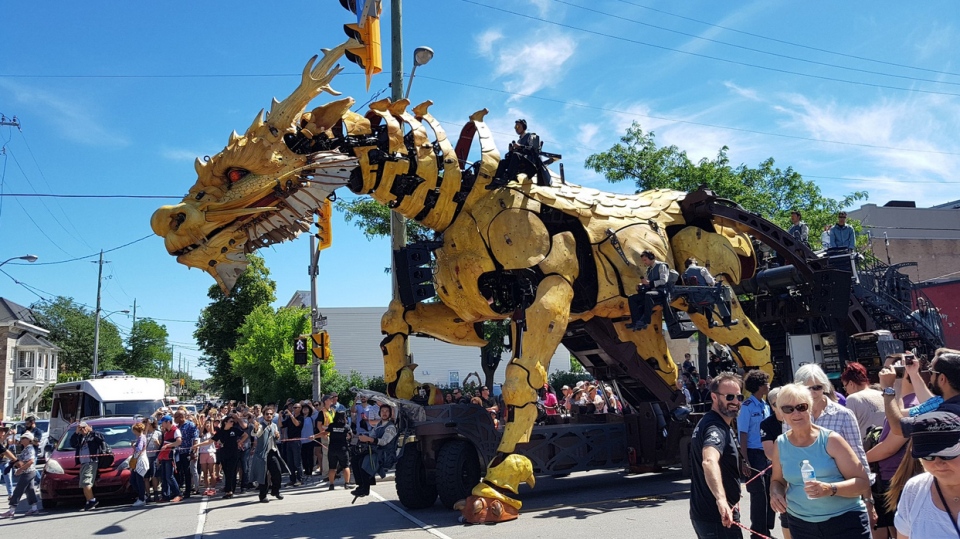 It's all part of La Machine, a show in Ottawa for Canada 150 celebrations. The show is called "The Spirit of the Dragon-Horse, with Stolen Wings."