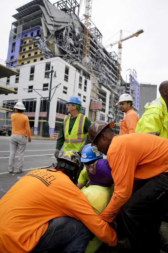 The collapse happened shortly after 9 a.m. Saturday at the site of a planned Hard Rock Hotel at the edge of the historic French Quarter.