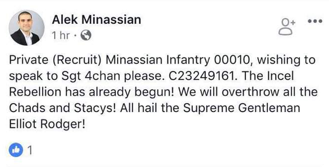 MINASSIAN: lt's basically - it's basically a movement of angry ah incels such as myself who are unable to get laid, therefore we want to overthrow the ah Chads --