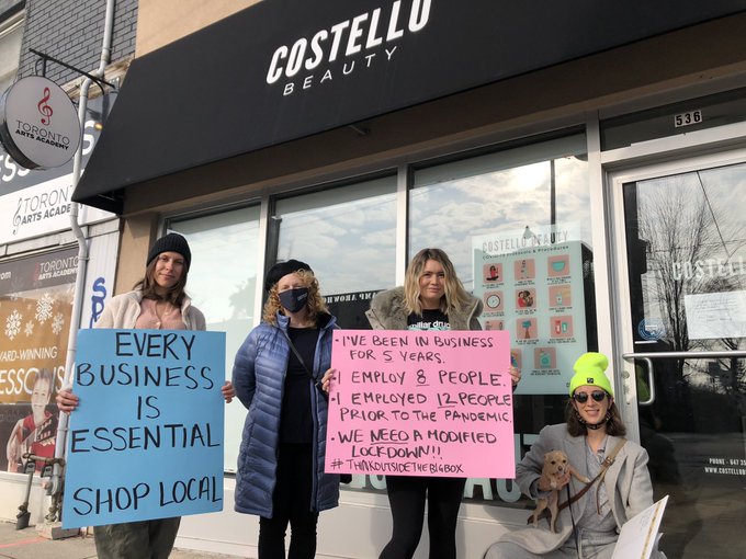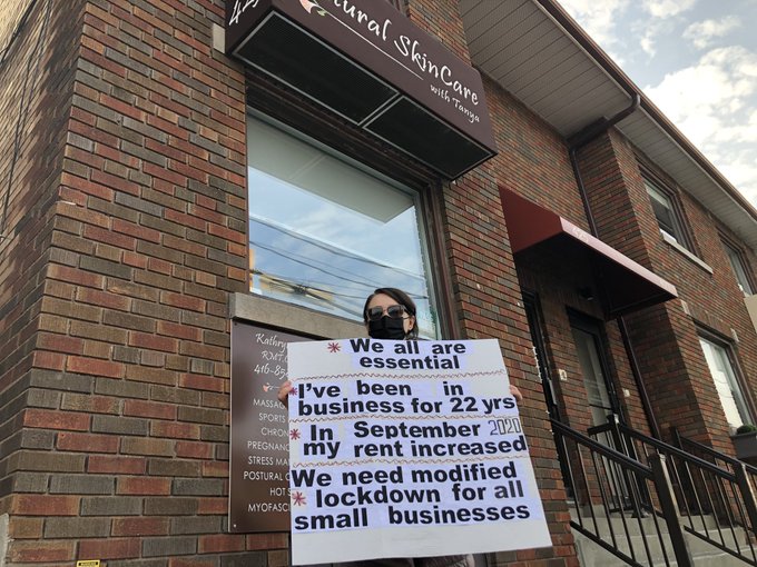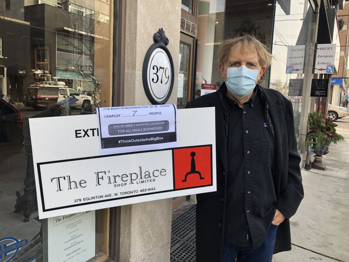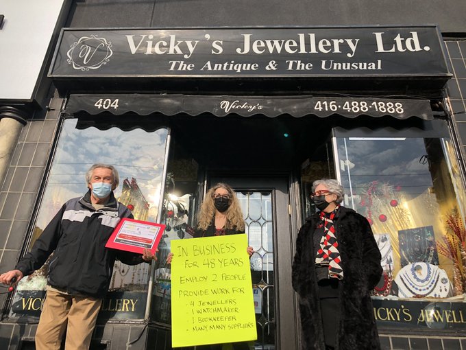 Business owners throughout Toronto stood outside their store fronts at noon Friday, in a show of solidarity calling for what they call a fair shot at a holiday shopping season.