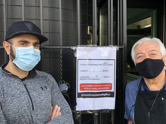 They argue they can comply with public health measures like social distancing better than the large retail and big box stores currently allowed to have instore shopping, while they can't.