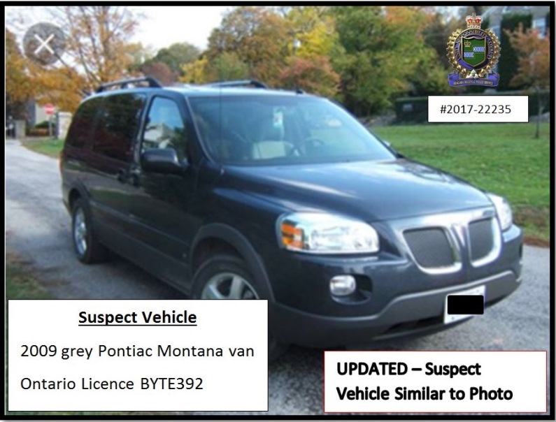 Kuijer is believed to be driving a dark grey 2009 Pontiac Montana minivan, licence plate BYTE392. It has a distinctive "Missing Women of Canada" decal on the rear window on the driver's side though police acknowledged it could be removed.