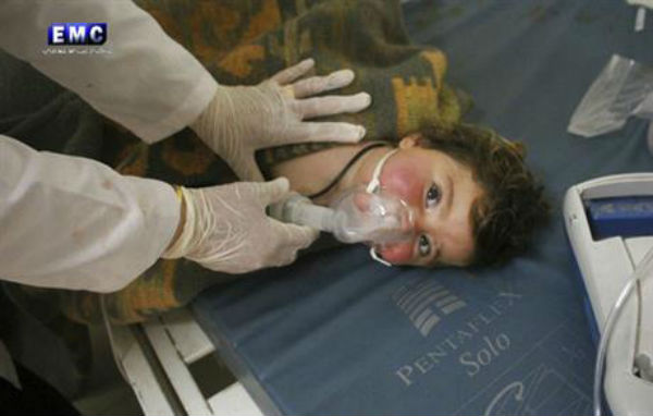 The media center published footage of medical workers appearing to intubate an unresponsive man stripped down to his underwear and hooking up a little girl foaming at the mouth to a ventilator. It was not immediately clear if all those killed died from suffocation or were struck by other airstrikes occurring in the area around the same time.