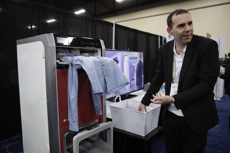 His “Laundroid” clothes-folder — and the rival FoldiMate also on display at CES — are feats of engineering that also underscore the limits of current technology. Sakane’s bureau-sized machine is powered by hidden robotic arms and computer vision that can distinguish between different types of clothing.