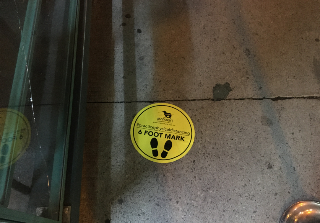 That includes each server having his or her own station throughout the evening, bartenders working at opposite ends of the bar, stickers on the floor promoting physical distancing, and having a separate exit to limit customers passing by each other.
