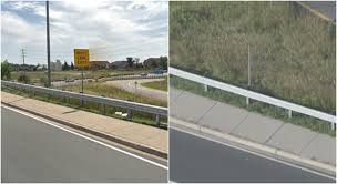 Fortunately the sign landed in a grassy area between lanes and no one was injured.